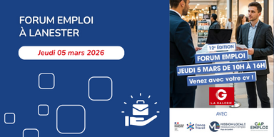 Forum emploi à La Galerie G de Lanester - Jeudi 05 mars 2026